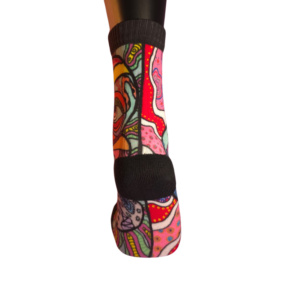 Voir l’invisible : l’œuvre t’invite à regarder au-delà de ce qu'on voit avec les yeux… et se décline en chaussettes, pour porter discrètement cette vision libératrice au quotidien.