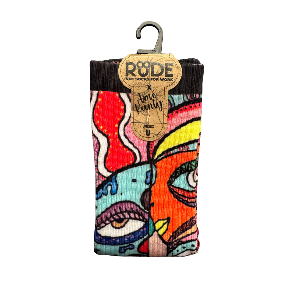 Imaginées par l’artiste française Amé Kunty, en collaboration avec Rude Socks et fièrement fabriquées en Afrique du Sud, ces chaussettes glissent un éclat de galaxies dans ta vie de tous les jours.